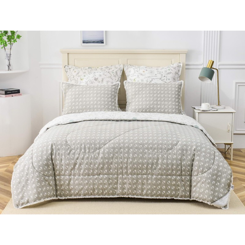 В комплекты комфортеров с одеялом Бернадетт входят наволочки, простыня и легкое всесезонное одеяло. Оцените это современное и очень удобное решение, которое идеально подходит тем, кто не любит возиться с пододеяльниками.