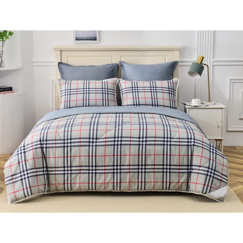 В комплекты комфортеров с одеялом Бернадетт входят наволочки, простыня и легкое всесезонное одеяло. Оцените это современное и очень удобное решение, которое идеально подходит тем, кто не любит возиться с пододеяльниками. Само одеяло тонкое и легкое, но под ним вам не будет холодно зимой или жарко летом. Такое одеяло можно использовать в любое время года, 100% хлопок гарантирует качественный сон, т.к. натуральная ткань не вызывает аллергии, хорошо впитывает влагу и позволяет коже дышать. Прочная и красивая ткань сатин, из которого выполнен комплект, мягкая и гладкая на ощупь, при этом вещи не теряют форму. Набор с одеялом прослужит вам достаточно долго без потери своего качества, а рисунок не потускнеет даже после стирок. Комплект легко стирается в обычной машине и также легко гладится. В нашем магазине представлены комплекты в разных тонах и с различными рисунками на выбор. Наборы упакованы в красивые подарочные коробки и могут послужить отличным решением для подарка.