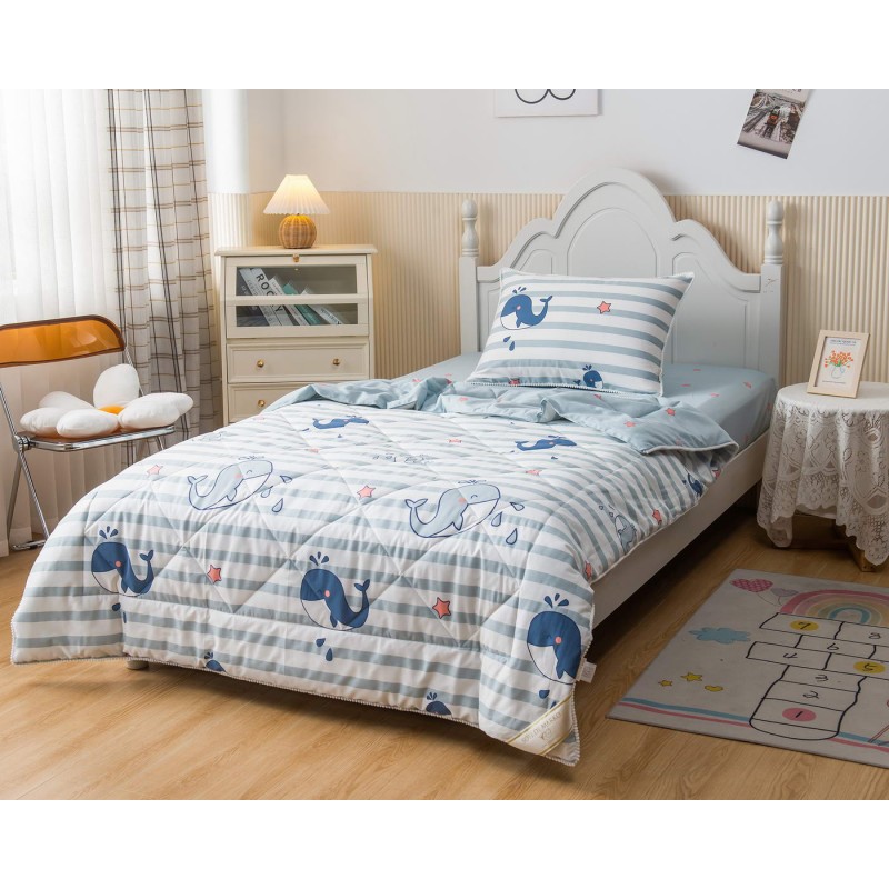 Само одеяло тонкое и легкое, но под ним ребенку не будет холодно зимой или жарко летом. Такое одеяло можно использовать в любое время года, 100% хлопок гарантирует качественный сон, т.к. натуральная ткань хорошо впитывает влагу и позволяет коже дышать. Натуральные материалы не вызывают аллергии. Огромная палитра оттенков и яркие дизайны комплектов понравятся детям и подросткам.