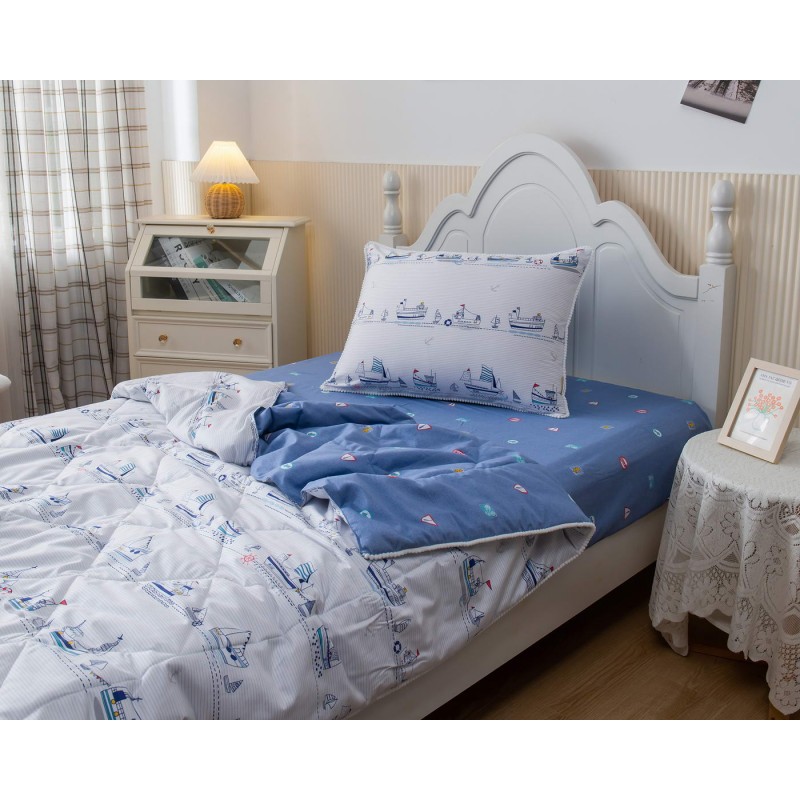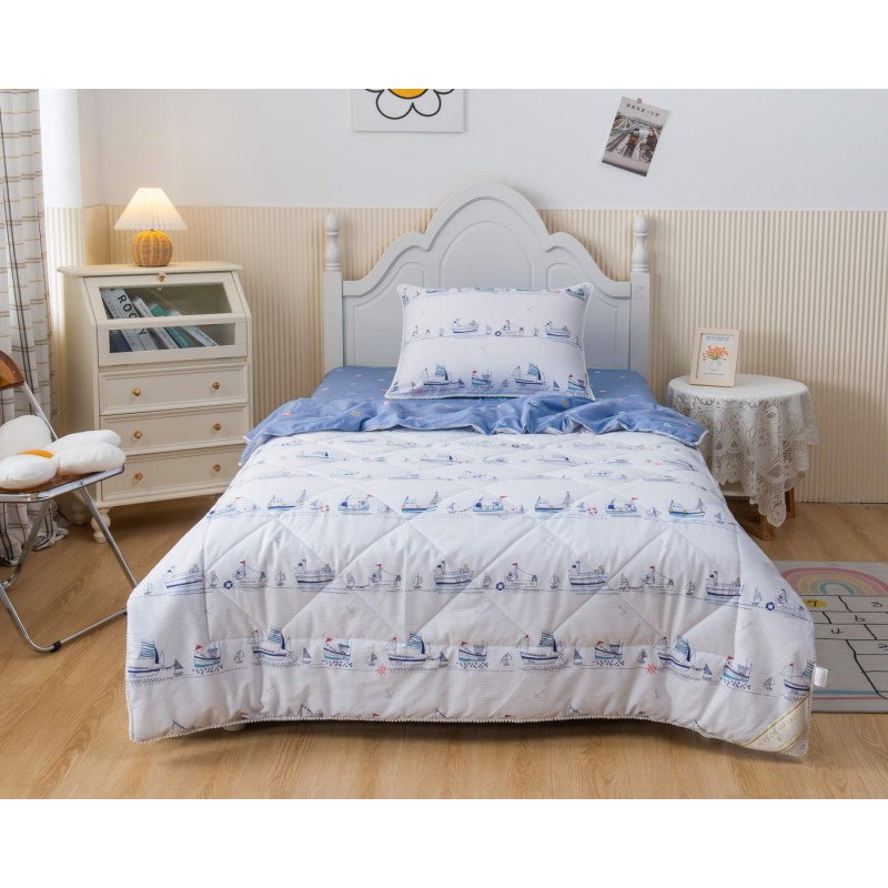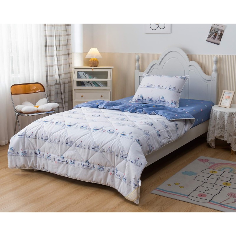 Само одеяло тонкое и легкое, но под ним ребенку не будет холодно зимой или жарко летом. Такое одеяло можно использовать в любое время года, 100% хлопок гарантирует качественный сон, т.к. натуральная ткань хорошо впитывает влагу и позволяет коже дышать. Натуральные материалы не вызывают аллергии. Огромная палитра оттенков и яркие дизайны комплектов понравятся детям и подросткам.