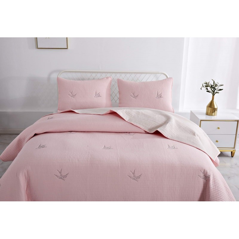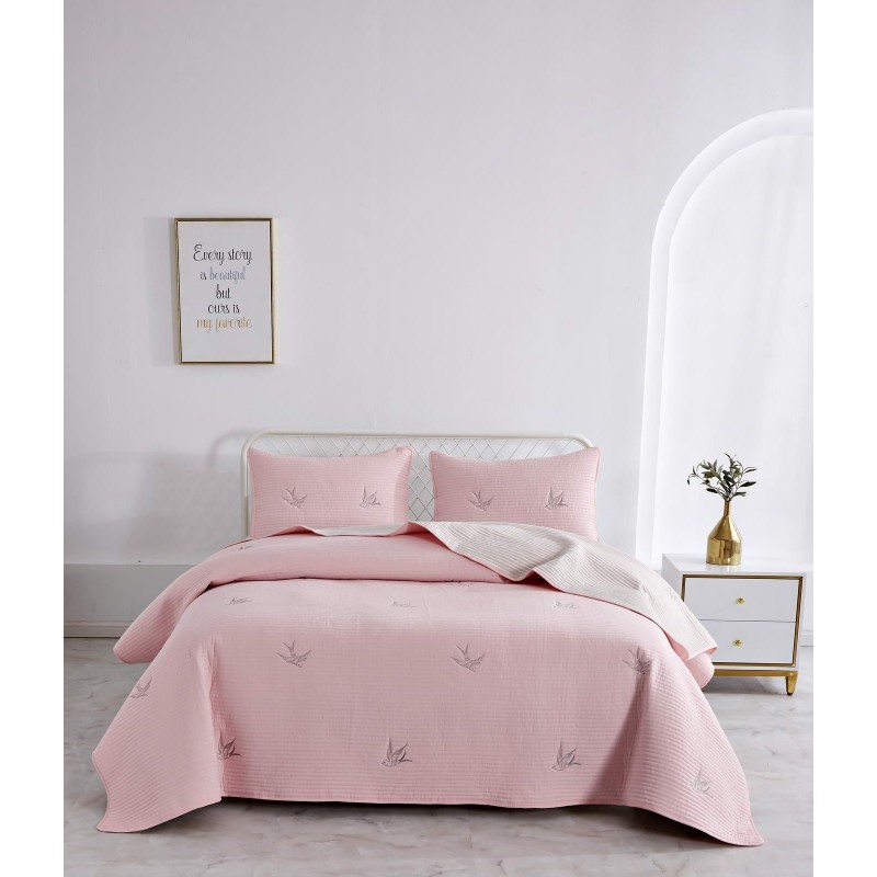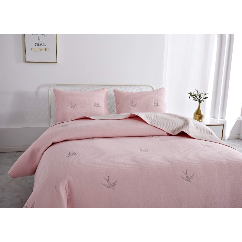 Покрывала этой коллекции выполнены из смеси хлопка и вискозы, используются только натуральные красители в пастельных тонах, тщательно продуманный рисунок напоминает о летнем небе и бескрайних полях южной Франции. Розовые или пудровые оттенки помогут создать романтичную атмосферу, более холодные хорошо подойдут для оформления мужской спальни.